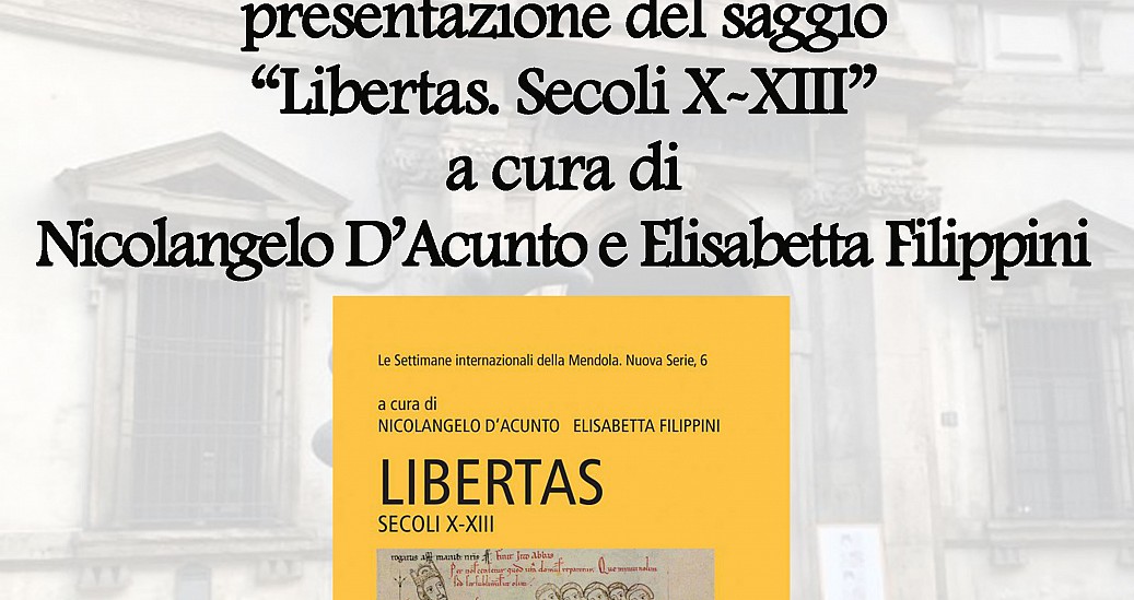 Sabato 18 gennaio 2020 alle ore 11,15 l’Associazione Italia Medievale, l’Archivio di Stato di Milano e Archeion sono lieti di invitarvi nella Sala Conferenze dell’Archivio di Stato di Milano in Via Senato, 10 alla presentazione di “Libertas. Secoli X-XIII” (Vita e Pensiero, 2019) a cura di Nicolangelo D’Acunto, Elisabetta Filippini. Interviene Nicolangelo D’Acunto. Ingresso libero.
