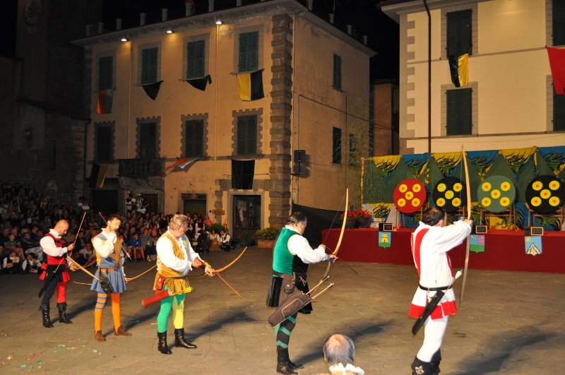 La “Disfida tra gli Arcieri di Terra e di Corte” rievoca una competizione avvenuta nel 1572 tra gli arcieri di Terra, il nucleo urbano e quelli di Corte, i villaggi intorno al borgo, ovvero i quartieri di Guardia, Verrucola, Fittadisio e Montechiaro. La gara è preceduta da una sfilata del corteo storico in costumi cinquecenteschi e in seguito gareggiano gli arcieri: cinque per ogni squadra, si affrontano cinque alla volta, cercando di colpire con le frecce, scoccate da archi di legno, i bersagli posti a 15 metri di distanza. La manifestazione ha luogo a Fivizzano nella bellissima cornice di Piazza Vittorio Emanuele II o Piazza Medicea a Luglio, la domenica successiva alla festività della Madonna di Reggio.