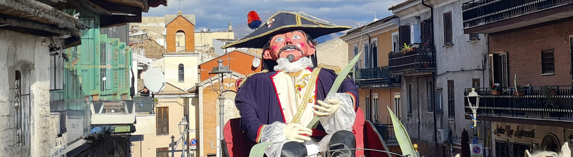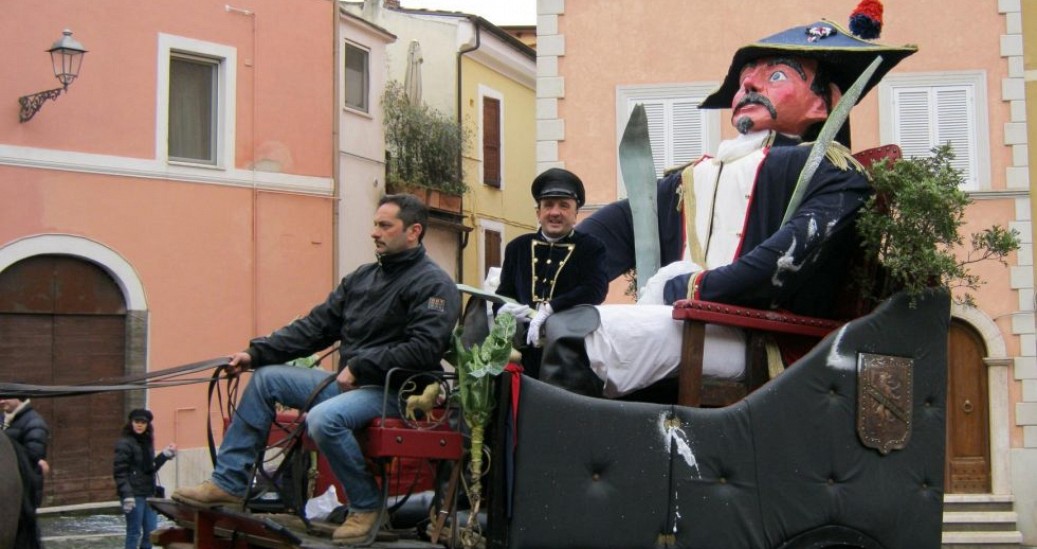 L’allegra processione è preceduta da un carretto che trasporta una botte di vino. Procedono a breve distanza i gruppi dei “radicari”, l’anima della truppa, seguiti dai rappresentanti dell’amministrazione comunale che portano il gonfalone della città. Poi viene la banda musicale che esegue ininterrottamente la canzone di carnevale ed infine il carro trainato da quattro cavalli che trasporta il “rubicondo” generale Championnet che con una mano si tiene la pancia satolla e con l’altra saluta la folla.