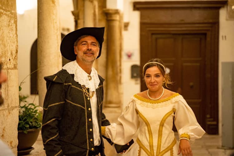 Le Notti della Contea rievoca la nomina di Giangirolamo II Acquaviva d’Aragona a Conte di Conversano; il Conte e la Contessa, dalla balconata del loro Castello situato sul punto più alto della Città, indicano i giorni di festa nei quali il popolo di Conversano gode della gloriosa storia della Contea, onorando le gesta e i fatti dei protagonisti che, tra l’XI e il XVII secolo, l’hanno resa prospera e illustre.