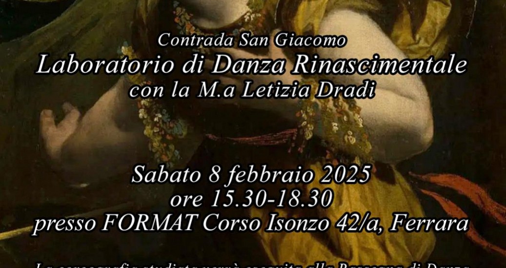 Sabato 8 Febbraio 2025 dalle ore 15.30 alle 18.30 presso FORMAT in via Corso Isonzo 42/A a Ferrara si terrà il Laboratorio di Danza Rinascimentale con la maestra Letizia Dradi.