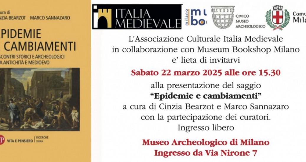 Sabato 22 marzo 2025 dalle ore 15,30 alle 17,00, nella sala conferenze del Civico Museo Archeologico di Milano (Ingresso libero da Via Nirone, 7) si tiene la presentazione del saggio “Epidemie e cambiamenti” a cura di Cinzia Bearzot, Marco Sannazaro con la partecipazione dei curatori.